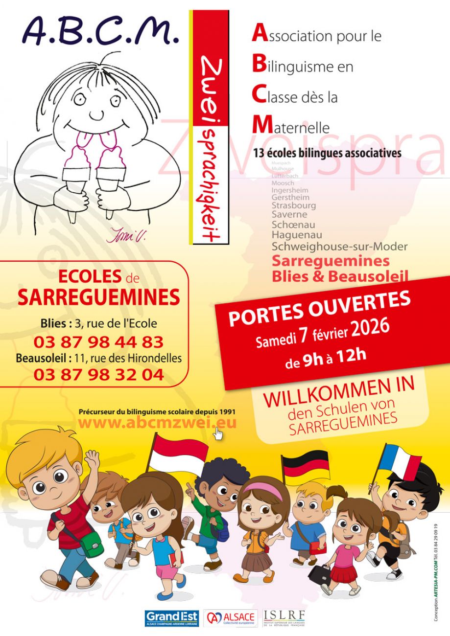 Samedi 7 février, de 9h à 12h auront lieu les portes ouvertes des écoles ABCM de Sarreguemines à savoir l’école ABCM de Beausoleil et l’école ABCM de la Blies.